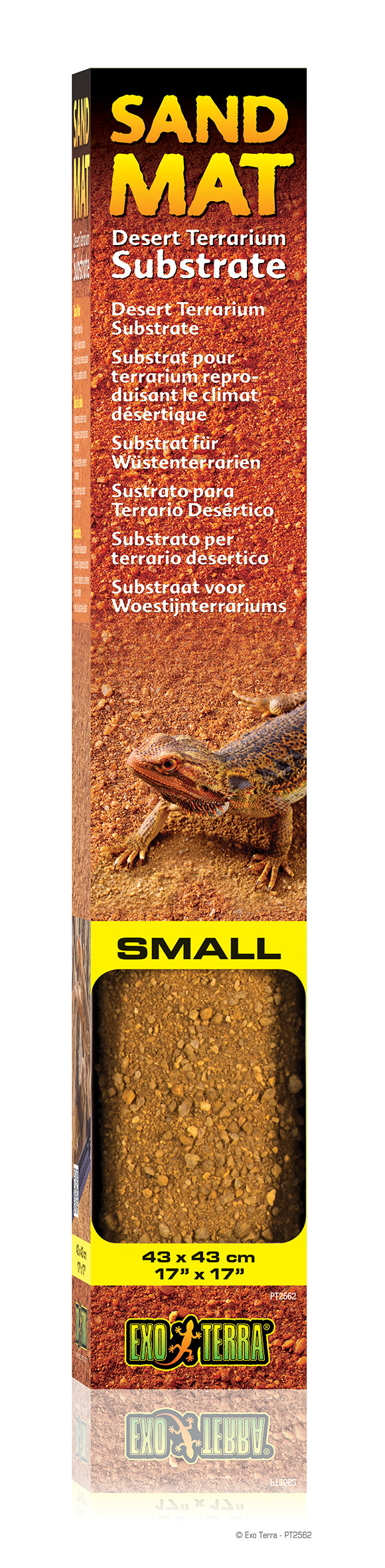 The Exo Terra Sand Mat has a natural desert appearance and can be applied as a safe & hygienic substrate substitute for your reptiles. The Sand Mat allows you to create a desert-like environment with a minimum of bacterial build up. Unlike loose sand or soil, the Sand Mat cannot be accidentally ingested. The texture of the Sand Mat enables your reptile to have a firm grip on the substrate, increasing your reptile’s sense of safety and comfort. Sturdy, hygienic and easily removable, the Exo Terra Sand Mat is easy to use and can be cut to fit any terrarium size. Simply rinse clean when soiled or replace as necessary.